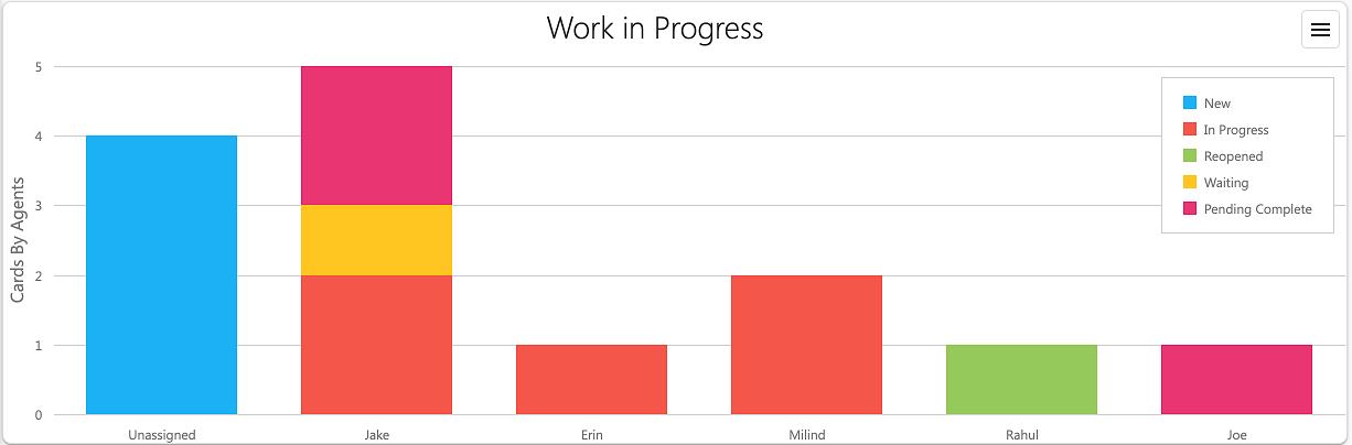 This dashboard element shows cards by agent and workflow step on the kanban board.