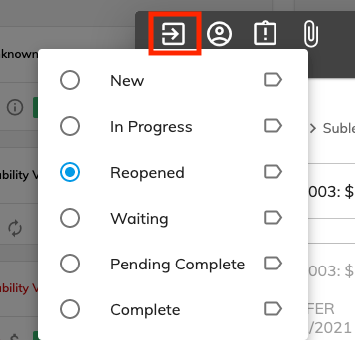 To move the card to a new column using the card header icons, click a radio button to select the desired column and then close the card to move it to the selected column.