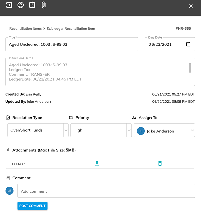 - Penny Card: This is the default category for any Subledger Reconciliation Item with a dollar amount between -$0.99 and $0.99.