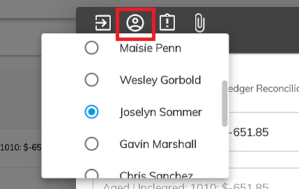 There is also an icon in the card summary view on the kanban board indicating who the card is assigned to. Newly created Subledger Reconciliation Items are Unassigned by default.