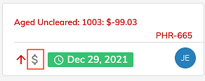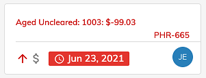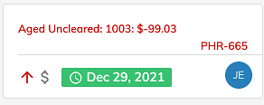 The card title contains three elements. Reconciling item type: company identifier: dollar amount.