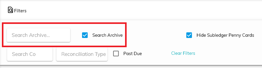 To search for a previously archived card, choose the Search Archive check box on the Filters. Once selected, the search box to the left will only search the archives.