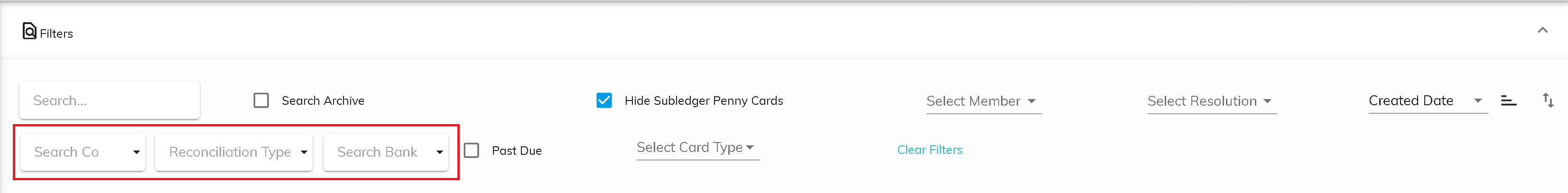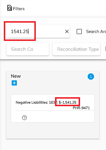 Search by Company, Reconciliation Type, or Bank Account