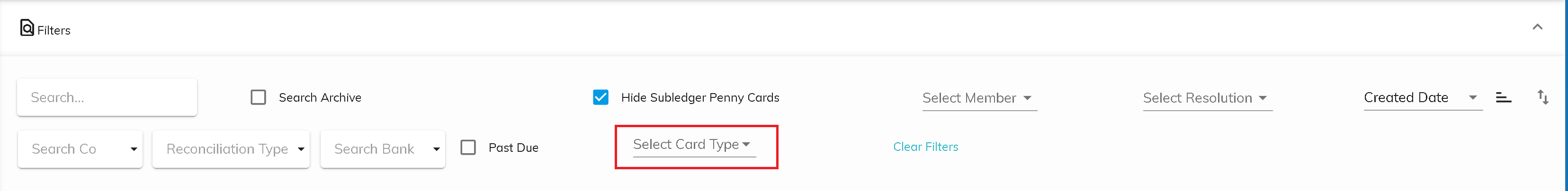 Filter by Card Type