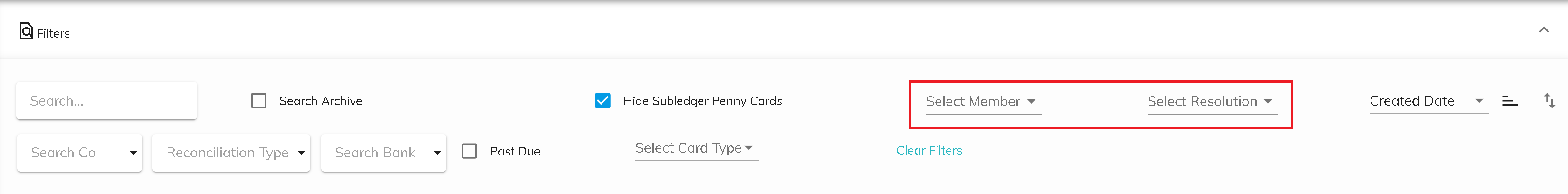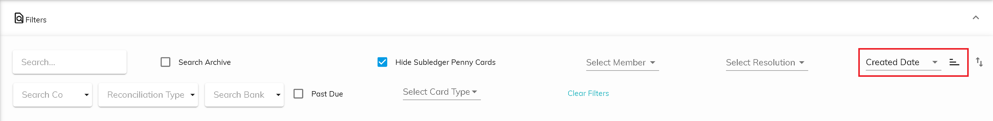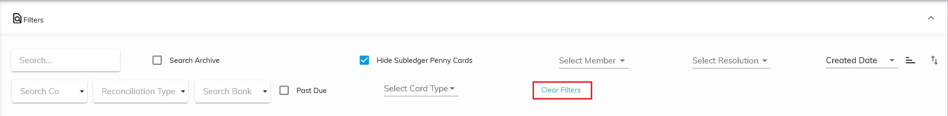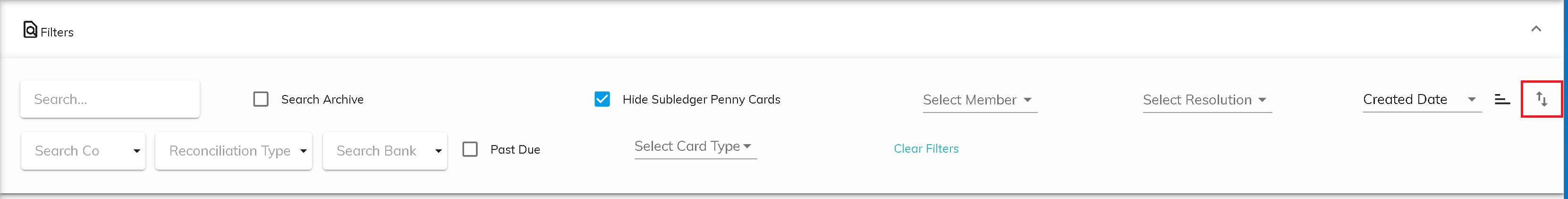 To clear any filters that have been previously set, click on Clear Filters.