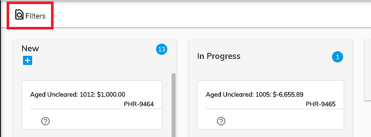 To search fields on the kanban board, click the Filters icon at the top of the screen.