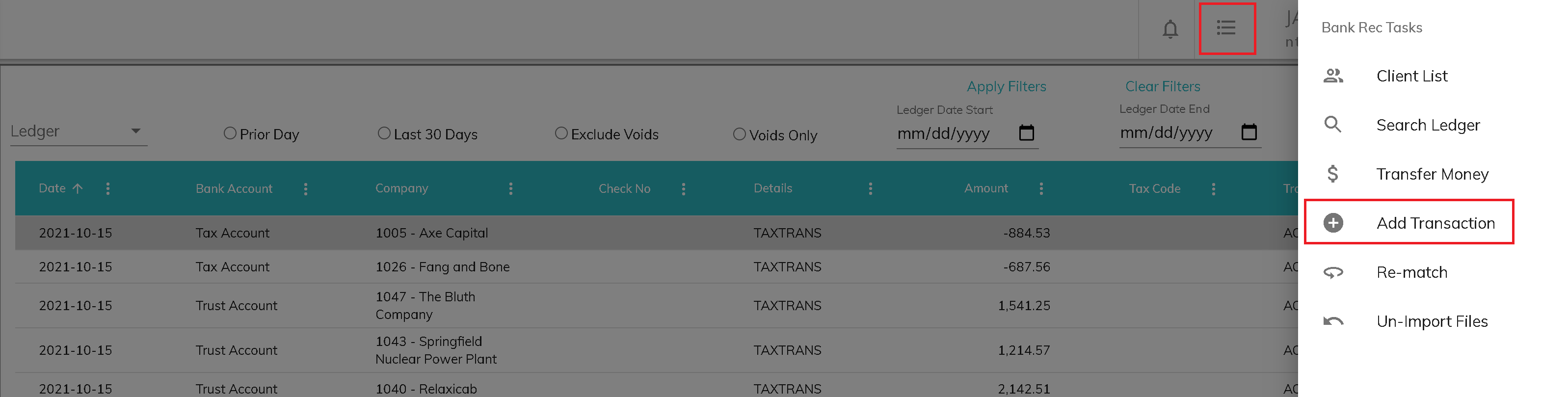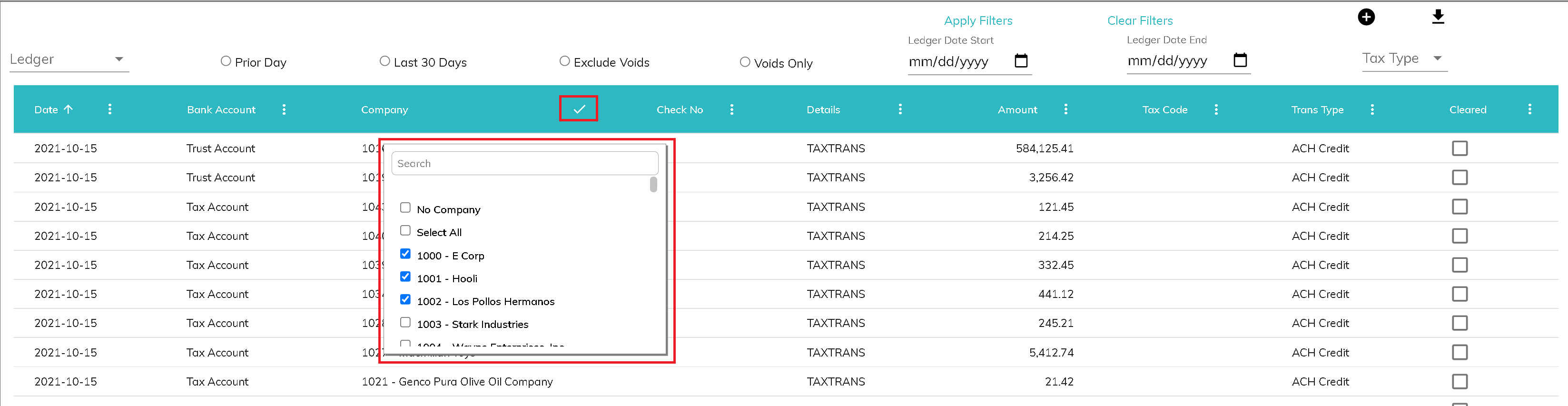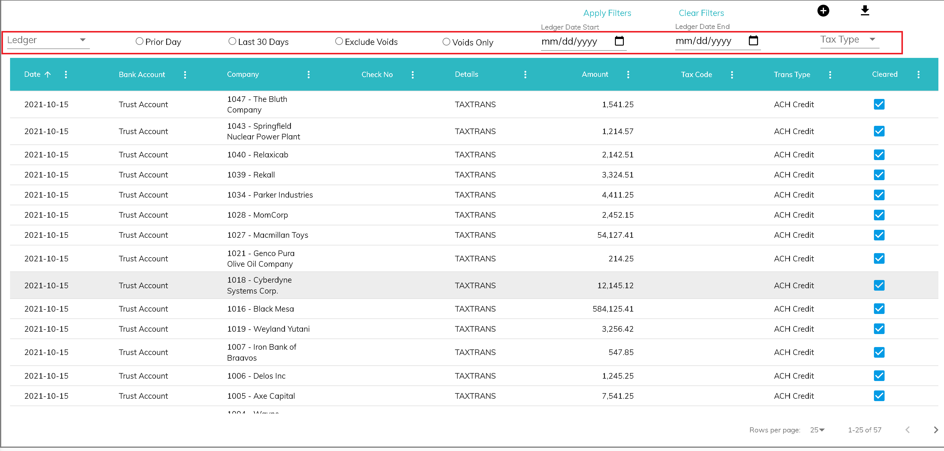 - Ledger: The ledger associated with the transaction (e.g. Billing, Direct Deposit, Trust, or Tax)