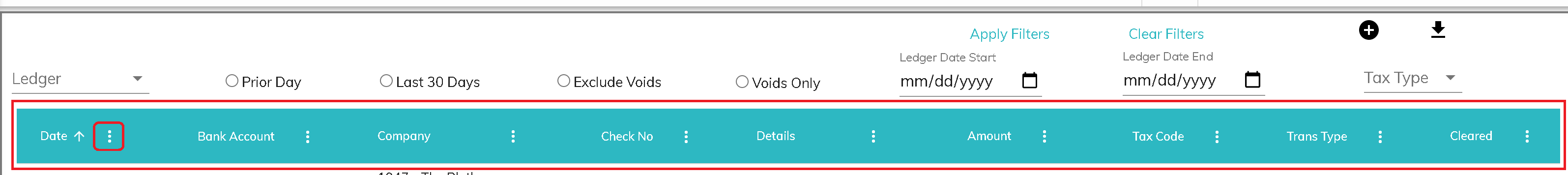- Cleared: Shows transactions that are either cleared or outstanding, depending on filter box checked
